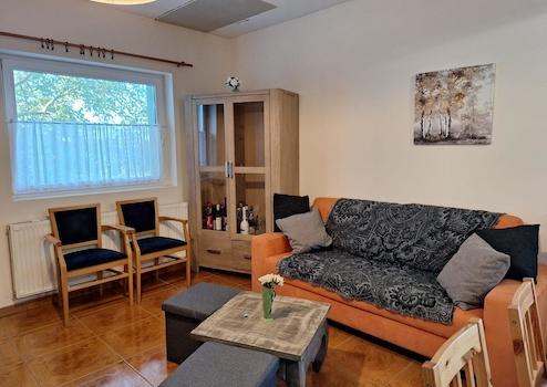 Das hintere, separat stehende Haus wurde 2008 erbaut. Im Erdgeschoss befindet sich eine 53 m² große Wohnung (Wohnzimmer–Esszimmer–Küche, Schlafzimmer, Bad, Abstellraum, Diele). Der Dachboden (45 m²) ist bereits mit Versorgungsanschlüssen vorbereitet und kann problemlos ausgebaut werden.