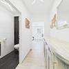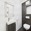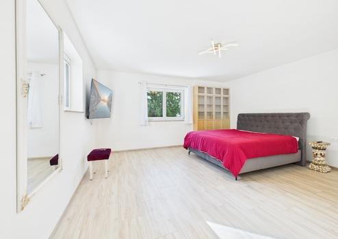 Drei Schlafzimmer bieten ausreichend Platz für Familie oder Gäste. Das stilvolle Badezimmer im Obergeschoss ist mit Badewanne, Dusche und WC ausgestattet. Praktisches Detail: Ein integrierter Wäscheabwurfschacht führt direkt in die geräumige Waschküche.