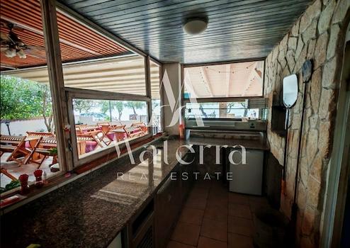 Im Erdgeschoss befindet sich eine Pizzeria mit 90 Sitzplätzen und Meerblick. Neben dem geräumigen Gastraum gibt es eine professionell ausgestattete Küche, einen Umkleideraum sowie sanitäre Anlagen für das Personal. Zusätzlich stehen auf dieser Etage die Rezeption und zwei Lagerräume zur Verfügung.