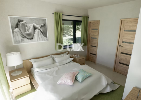 Die Stadt Poreč ist eine der schönsten Perlen der Adria an der Westküste Istriens und stellt heute stolz das touristische, wirtschaftliche und kulturelle Zentrum Westistriens dar. Mit ihren 17.000 Einwohnern, ihrer außergewöhnlichen geografischen Lage, ihren natürlichen und kulturellen Schönheiten sowie ihrem reichhaltigen touristischen Angebot in der Vor- und Nachsaison gehört sie zu den Trägern des Elite-Tourismusangebots auf Ebene der Republik Kroatien bzw. der Europäischen Union und ist das ganze Jahr über ein angenehmer Ort zum Verweilen und Leben mit zahlreichen Einrichtungen für ein qualitativ hochwertiges Stadtleben. Apartment C2 ist als zweistöckiges, halb unabhängiges Apartment mit zwei Schlafzimmern und einer Fläche von 104,58 m² konzipiert. Es verfügt über einen eigenen Parkplatz und einen privaten Garten von 171 m² mit ausreichend Platz für den Bau eines eigenen Pools (4 x 8 m). Das Apartment besteht aus einem offenen Wohn-/Esszimmer/Küche, zwei Schlafzimmern, einem Balkon, drei Bädern und einer überdachten Außenterrasse. Jedes Zimmer ist voll klimatisiert. Im Preis nicht inbegriffen sind Möbel, Swimmingpool und Küche.