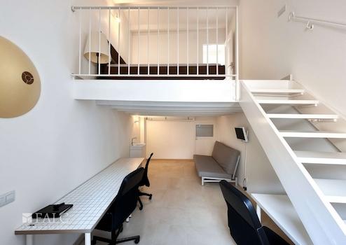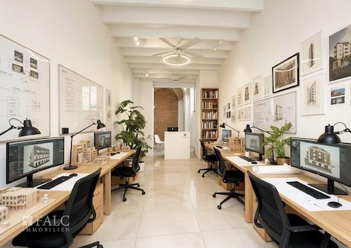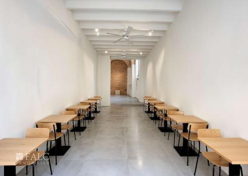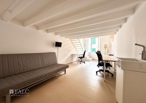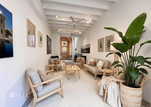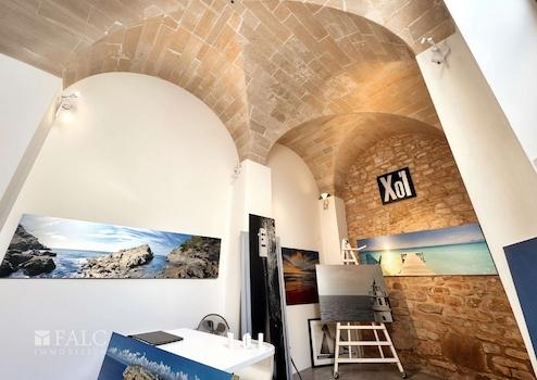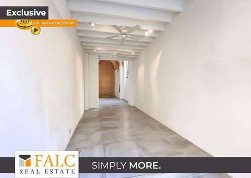 Das großzügig geschnittene Ladenlokal besticht durch seine offene Gestaltung und seine außergewöhnliche Architektur. Mit einer Deckenhöhe von über fünf Metern und imposanten Kreuzbögen aus traditionellem Mares-Stein vermittelt die Fläche ein repräsentatives und zugleich authentisches Ambiente. Die frühere Nutzung als Kunstgalerie unterstreicht den besonderen Charakter und die Vielseitigkeit des Objekts. Große, lichtdurchflutete Flächen ohne störende Einbauten sowie hochwertige, helle Bodenfliesen bieten maximale Flexibilität für unterschiedlichste Nutzungskonzepte. Eine bestehende Ladenlizenz ermöglicht unter anderem die Nutzung als Boutique, Concept Store, Galerie, Büro, Praxis oder Bar. Ergänzt wird das Raumangebot durch einen Lastenaufzug zum oberen Lagerbereich sowie zwei separate WCs im Patio, die reibungslose Abläufe im täglichen Betrieb gewährleisten.