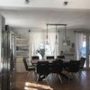 Das Erdgeschoss ist ein geräumiger offener Raum, in dem sich eine große Küche mit Brotbackofen, ein Esszimmer, eine Toilette, ein Badezimmer mit Whirlpool und ein Wohnzimmer befinden. Wintertage mit Meeresrauschen werden zu etwas Besonderem, denn im Wohnzimmer gibt es einen großen Kamin.