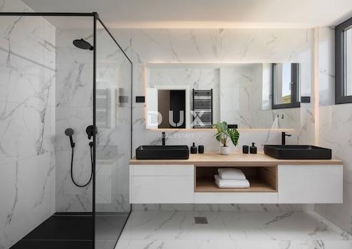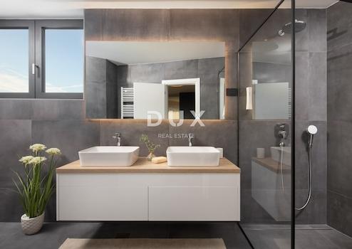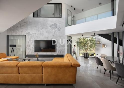 An der Südostküste Istriens, wo grüne Hügel auf das Meer treffen, wo Natur und Kulturerbe sich vereinen, liegen zwei Städte ähnlicher Größe mit unterschiedlichem, aber sich gegenseitig ergänzendem Charakter – Labin und Rabac. Das malerische Städtchen Labin erhebt sich auf einem 320 m hohen Hügel, nur vier Kilometer von den weißen Kieselstränden von Rabac entfernt. Verwoben mit einer reichen Geschichte und dem Bergbau, der diese Gegend prägte, ist Labin, das kurzzeitig zur unabhängigen Republik erklärt wurde, heute eine faszinierende Stadt der Widersprüche: Alt und Neu, Geschichte und Gegenwart, Tourismus und Kunst. Unweit der Stadt Labin steht eine moderne Villa inmitten der Natur zum Verkauf. Die Immobilie verkörpert eine Harmonie aus Raum, Bedürfnissen, Funktionen, Bauweise und Schönheit. Die Mikrolage bietet das authentische Erlebnis einer istrischen Kleinstadt, Intimität und Erholung von Hektik und Lärm bei gleichzeitiger Nähe zum Meer und den städtischen Annehmlichkeiten von Labin. Neben der Lage, die absoluten Komfort und Privatsphäre bietet, zeichnet sich das Anwesen auch durch die Bauqualität aus, die langfristige Zufriedenheit und Lebensqualität garantiert. Die Villa fügt sich mit ihrer Architektur in Form und Farbe in die Siedlung und Landschaft ein und schafft eine Synergie aus natürlicher Umgebung und modernem Design. Sie ist als eine Wohneinheit definiert, deren Fläche sich auf zwei geschmackvoll eingerichtete und gut ausgestattete Etagen mit funktionalem Grundriss verteilt. Das Erdgeschoss besteht aus einem geräumigen, offenen Konzept, das Küche, Esszimmer und Wohnzimmer mit Zugang zu einer geräumigen überdachten Terrasse mit Sommerküche, Außentoilette und Abstellraum vereint. Der Grundriss des Erdgeschosses wird ergänzt durch einen Fitnessraum mit Fitnessgeräten, ein Schlafzimmer mit eigenem Bad, eine Gästetoilette, eine Waschküche und einen Technikraum mit Abstellraum. Der erste Stock besteht aus einem Flur auf der Galerie und drei Schlafzimmern mit eigenen Bädern und privaten Terrassen. Der Hof ist stimmungsvoll und gärtnerisch gestaltet und ein Swimmingpool mit Liegewiese sorgt für vollkommene Harmonie. Die hervorragende Lage und die räumliche Aufteilung des Innen- und Außenbereichs dieser Immobilie bieten die Möglichkeit für ein komfortables Familienleben oder eine Investition in ein touristisches Vermietungsgeschäft.