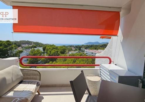 - Balkon mit Meerblick und Südwest-Ausrichtung mit elektrischem Senkrechtmarkise und LED-Beleuchtung