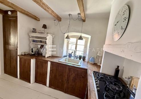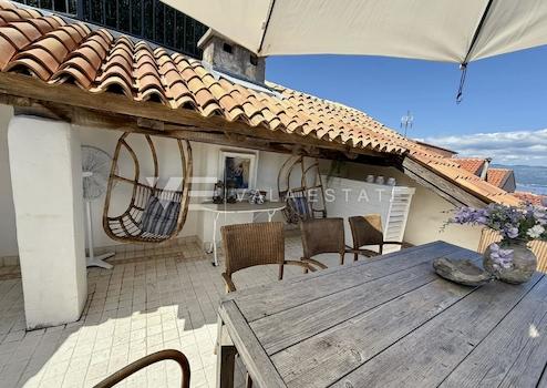 Immobilien Insel Krk, Vrbnik – Zum Verkauf steht ein hochwertig renoviertes und geschmackvoll eingerichtetes Reihenhaus aus authentischem Stein in der Altstadt von Vrbnik. Es besteht aus zwei Wohnungen mit einer Gesamtwohnfläche von 120 m². Im Erdgeschoss befindet sich ein Studio-Apartment mit kleiner Küche, Bad und Schlafzimmer. Im ersten Stock, der über eine Außentreppe verbunden ist, befindet sich eine zweite Wohnung auf drei Etagen, die über eine Innentreppe verbunden sind. Im ersten Stock befinden sich Eingangshalle, Schlafzimmer und Bad, im zweiten Stock Küche mit Essbereich und Wohnzimmer und im dritten Stock eine große Dachterrasse mit Panoramablick auf das Meer. Das Haus ist innen und außen im rustikalen Stil eingerichtet. Bei der Renovierung wurden hochwertige Materialien verwendet und einheimische Elemente und Steine erhalten. Das Haus ist klimatisiert und verfügt über einen Kamin. Ideal als Investition zur touristischen Vermietung, aber auch für alle Liebhaber der Küstenarchitektur.
