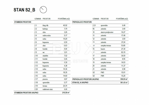 Wir bieten Ihnen eine Immobilie, die Ihnen modernes Design und Eleganz, Komfort und erstklassige Ausstattung bietet und sich in einer schönen, ruhigen Lage in der Nähe von öffentlichen Verkehrsmitteln, Schulen, Kindergärten, Einkaufszentren und zehn Autominuten von Rijeka befindet. Der Komplex aus 4 Wohnhäusern mit insgesamt 8 Wohnungen liegt nördlich der Adria-Autobahn im Gebiet „Zelena Kostrena“ von wo aus sich ein wunderschöner Ausblick auf die gesamte Kvarner Bucht bietet. In unmittelbarer Nähe gibt es 10 Kilometer gepflegte Wander-, Rad- und Fitnesswege, die durch die höchsten Teile von Kostrena vom Gipfel Solin bis zum Gipfel Sopalj führen. Die Zufahrt zu den Häusern erfolgt über die obere Straße, wobei eine Verbesserung und Erweiterung der bestehenden Straße geplant ist. Zu jedem Haus gehören vier Außenstellplätze, das heißt zwei Stellplätze pro Wohneinheit. Jedes Haus besteht aus zwei Wohnungen. Dabei liegen die Wohnungen der oberen beiden Grundstücke übereinander, während die Wohnungen der unteren beiden Grundstücke nebeneinander liegen. Zu jeder Wohnung gehört ein Gartenanteil. HAUS B Wohnung S2 - B: WOHNRÄUME: - Wohnzimmer / Esszimmer 40,92 - Küche 7,79 - Vorratsraum 3,26 - Arbeitszimmer 9,17 - Zimmer 19,20 - Badezimmer 6,59 - Eingang 6,63 - Flur 4,04 - WC 3,01 - Treppenhaus 7,52 - Flur 5,46 - Badezimmer 4,38 - Badezimmer 4,38 - Zimmer 14,36 - Zimmer 18,35 - Zimmer 14,60 - Waschküche 4,87 - Abstellraum 5,77 - Terrasse 25,74 - überdachter Eingang 4,46 WOHNRÄUME GESAMT: 210,50 m² NEBENRÄUME: - Abstellraum 6,48 - Grünfläche 3,40 - Eingangshalle 16,27 - Grünfläche 17,48 - Grünfläche 3,59 - Grünfläche 37,24 - Außenterrasse 53,85 - Schwimmbad 27,30 - Grünfläche 83,19 - Grünfläche 30,59 - Grünfläche 8,95 - Außenterrasse 14,03 - Grünfläche 11,37 - Grünfläche 6,98 - Stellplatz 3 15,01 - Stellplatz 4 15,20 ZUGEWIESENE PLÄTZE GESAMT: 350,93 m² WOHNUNG S2-B GESAMT: 561,43 m² Diese luxuriöse Wohnung ist auf maximalen Komfort ausgelegt. AUSSTATTUNG: Das Haus, in dem sich die Wohnung befindet, ist gut gebaut und luxuriös ausgestattet, alle eingebauten Materialien, Boden- und Wandbeläge entsprechen den höchsten Standards. - 10 cm dicke Fassadendämmung - Fußbodenheizung - Wärmepumpen - hochwertige Aluminium-Tischlerei. Zur Wohnung gehört ein eigener Garten und 2 PKW-Stellplätze. PREIS: Der angegebene Preis bezieht sich auf eine komplett fertiggestellte schlüsselfertige Anlage, ohne Möblierung. Der Preis beinhaltet die gesetzliche Mehrwertsteuer, der Käufer ist von der Zahlung der Grundsteuer befreit. Bei einem Kauf von einem in Kroatien registrierten Unternehmen ist nach dem Verkauf eine volle Mehrwertsteuerrückerstattung möglich. Sauberes und ordentliches Anwesen. Sicherlich eine wunderschöne Immobilie für luxuriöses Familienleben, aber auch als Investition in Form von Elitetourismus geeignet. EINZIGARTIGES ANWESEN, DAS IHRE AUFMERKSAMKEIT UNBEDINGT WERT IST UND IN EINER TOLLEN LAGE LIEGT!!! KOSTRENA Kostrena ist eine alte, beliebte Küstenstadt, die erstmals zu Beginn des 15. Jahrhunderts erwähnt wurde. Im Jahr 1874 erlangte die Stadt erstmals ihre kommunale Unabhängigkeit, die sie jedoch nur für sehr kurze Zeit, nämlich nur zwei Jahre, behielt. Es ist in zwei Teile gegliedert, St. Lucia und St. Barbara, nach den Namen zweier Kirchen, die es in dieser Gegend gibt. Kostrena liegt in unmittelbarer Nähe der Stadt Rijeka, eingerahmt von der Bucht Martinšćica und der Bucht von Bakar. Die Halbinsel Kostrena ist etwa 10 Kilometer lang und fällt sanft zur Küste hin ab. Auf seiner gesamten Länge gibt es wunderschöne Strände, die im Sommer von Tausenden von Badegästen besucht werden. Die bekanntesten und am meisten besuchten sind jene in der Bucht von Žurkovo, gefolgt von Smokvinovo, Svežanj, Spužvina, Podražica, Nova voda und Perilo. Kostrena besteht aus etwa zwanzig Siedlungen, von denen viele nach Familien benannt wurden. Die bevölkerungsreichsten Orte sind heute Vrh Martinšćice, Glavani und Sv. Lucija, Rožmanići, Doričići und Paveki. Ein charakteristisches Karstgebiet mit mediterraner Vegetation und der berühmten Kostrena-Grotte sowie ein mildes Klima, das manchmal starken Bora-Böen weicht, sind die Merkmale dieser Region.