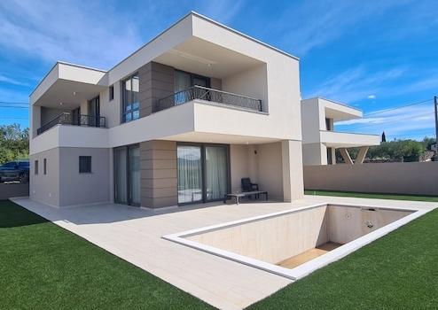 Neu gebaute Villa B2 mit Pool auf der Insel Krk, Wohnfläche von 165 m2 zu verkaufen. Es befindet sich im Dorf Brzac. Die Villa besteht aus Erdgeschoss und erstem Obergeschoss und einem dazugehörigen Garten. Im Erdgeschoss befinden sich eine Eingangshalle, eine Küche mit Esszimmer und Wohnzimmer, ein Schlafzimmer mit eigenem Bad, eine Toilette, ein Abstellraum, eine Sauna, zwei Abstellräume und eine überdachte Terrasse. Im Obergeschoss befinden sich drei Schlafzimmer mit Zugang zur Terrasse, zwei Badezimmer, ein Ankleidezimmer, eine überdachte und eine nicht überdachte Terrasse. Die Villa hat einen schönen Blick auf das Meer und ist komplett fertiggestellt. Das Interieur ist komplett möbliert und steht als solches zum Verkauf. Die Umgebung ist mit Grün und einem Bewässerungssystem und einem abgelegenen Zaun gestaltet. Ausrüstung: - Vorbereitung für die Erwärmung des Wassers im Pool mit einer Wärmepumpe - elektrische Fußbodenheizung des gesamten Gebäudes, Regelung über WLAN möglich - Vorbereitung für ein Photovoltaik-Kraftwerk auf dem Dach - Möbel, basic (maßgefertigte Küche mit Geräten, Tisch, Stühlen, Wohnzimmermöbeln, Betten in den Schlafzimmern, Kleiderschränke, Bad-Grundmöbel und Sanitärkeramik, TV im Wohnzimmer - Klimaanlagen in jedem Zimmer und Wohnzimmer LG Art cool - Beleuchtungskörper - Semelrock Pflasterung -"Figuren" Keramik - Porotherm Ziegel - STO-Fassadensystem - Panorama-Hebeschiebewände, PVC - Vorbereitung für geladene Elektrofahrzeuge Grundriss der Villa: Überdachter Eingang: 7,00 m2 Eingang: 7,56 m2 Schlafzimmer 1: 7,83 m2 Badezimmer 1: 3,71 m2 Küche, Esszimmer, etc. Wohnfläche: 42,63 m2 Lager 1: 4,87 m2 WC: 3,71 m2 Überdachte Terrasse: 13,49 m2 Gesamtgeschoss: 89,26 m2 K A T Treppenhaus: 6,07 m2 Flur: 6,93 m2 Raum 2: 12,76 m2 Badezimmer 2: 5,72 m2 Raum 3: 11,70 m2 Schlafzimmer 4: 16,35 m2 Badezimmer 3: 5,76 m2 Kleiderschrank: 3,58 m2 Überdachte Terrasse: 6,67 m2 1. Stock gesamt: 75,54 m2 GESAMT: 164,80 m2 Bruttobauvolumen BGV-GEBÄUDE: 494,37 m3 BGV-SCHWIMMBAD: 25,16 m3 BGV GESAMT: 519,53 m3 Die Stadt Brzac liegt auf der Westseite der Insel und ist einen Kilometer vom Strand entfernt. Es bietet einen schönen Blick auf die Insel Cres. Der alte Teil des Ortes besteht aus Steinhäusern und engen Gassen. In der Nähe befindet sich Vela Jana – eine Bucht mit einem Strand und einem kleinen Yachthafen. Drei Kilometer vom Dorf entfernt, an der Küste, befindet sich Glavotok mit einem Franziskanerkloster aus dem 15. Jahrhundert. und eine kleine Kirche direkt am Meer. Die Stromschnellen sind 15 km von der Stadt Krk und 13 km von der Ortschaft Malinska entfernt.