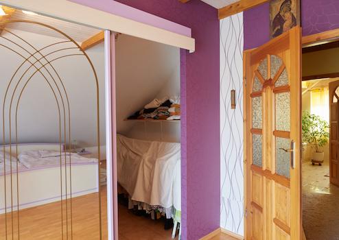 Das Haus überzeugt mit hochwertigen Materialien, darunter Massivholz-Innentüren und einem Holzofen mit Lüftungsschächten, die das Obergeschoss mit angenehmer Wärme versorgen. Ein Abstellraum ist ebenfalls vorhanden. Ein gemütliches Schlafzimmer rundet das Angebot im EG ab.