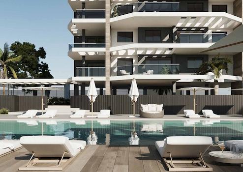 Appartements mit 3 Schlafzimmern, 2 Badezimmern, Tiefgaragenstellplatz, Gemeinschaftspool und Meerblick nur 200 m vom Strand
