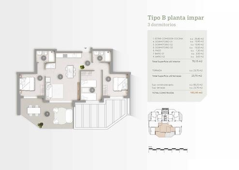 Diese fantastischen Wohnungen in Strandnähe verfügen über eine konstruierte Fläche von ca. 104 m² - 113 m² (verschiedene Modelle, inklusive Terrassen) mit