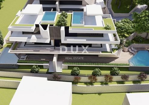 Aus dem hochwertigen DUX-Angebot heben wir die Investitionsmöglichkeit in Opatija hervor. Wir präsentieren ein 2485 m² großes Baugrundstück für drei Bauplätze im Zentrum von Opatija. Die genannten Bauplätze befinden sich in einem Wohngebiet oberhalb des Zentrums – in einer ruhigen Straße mit hochwertiger Nachbarschaft und wunderschönem Meerblick. Die Fläche des Bauplatzes beträgt ca. 800 bis 880 m² und es gibt bereits einen Bebauungsplan. Auf jedem Grundstück kann ein Gebäude mit sechs Luxuswohnungen mit Garage, Terrassen und Swimmingpools gebaut werden. Insgesamt beträgt die Verkaufsfläche ca. 650 m² x 3 Bauplätze = 1950 m² Verkaufsfläche. An diesen Positionen können anstelle von Wohnungen drei luxuriöse Villen mit Swimmingpools gebaut werden. Konzeptlösungen (Visualisierungen) für den Bau von Wohnungen liegen bereits vor. Die Grundstücke haben eine regelmäßige, quadratische Form und sind leicht geneigt. Jeder Bauplatz bietet einen wunderschönen Blick auf das Meer und ist vom Grün der Učka und erholsamen Wanderwegen umgeben. Die Zufahrt zum Grundstück ist hochwertig und führt über eine asphaltierte Straße. Das Grundstück verfügt über die notwendige Infrastruktur für den Bau, und in Absprache mit der Agentur kann die weitere Gestaltung der Gebäude problemlos erfolgen. Dies ist eine großartige Gelegenheit für Investitionen und Projektentwicklung im Zentrum von Opatija, wo Grundstücke dieser Art eine echte Seltenheit sind. Um eine Besichtigung der Immobilie zu vereinbaren, rufen Sie den Makler vertrauensvoll an – eine Beratung auf Deutsch ist möglich.