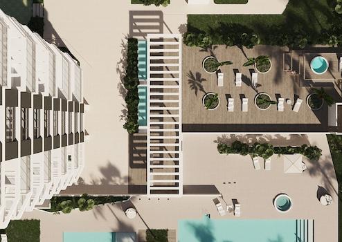 Diese Anlage besteht aus zwei Appartementhäusern, die nur ca. 200 m vom Strand entfernt liegen. Insgesamt entstehen hier 88 Appartements mit 2, 3 oder 4 Schlafzimmern und 2 oder 3 Bädern.