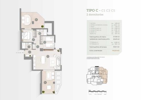 Diese modernen Wohnungen in Strandnähe verfügen über eine konstruierte Fläche von ca. 108 m² - 118 m² (verschiedene Modelle, inklusive Terrassen) mit