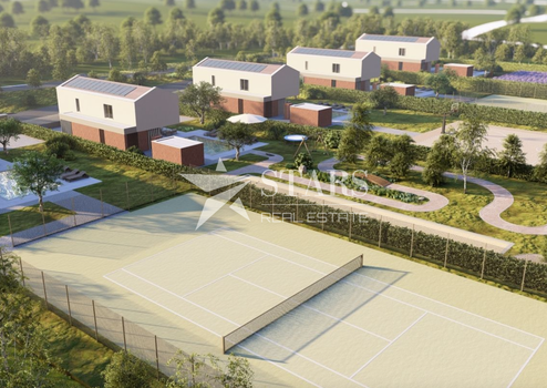 Das Erdgeschoss zeichnet sich durch ein großzügiges Open-Space-Konzept aus, das eine moderne Küche, einen eleganten Essbereich und ein komfortables Wohnzimmer umfasst – ideal für Familientreffen oder Feiern mit Freunden. Zusätzlich befinden sich hier Innen- und Außenlagerflächen, ein separater Fitness- oder Saunaraum sowie Zugang zu einer wunderschönen überdachten Terrasse mit Sommerküche. Der Außenbereich verfügt über einen beheizten Pool mit einer Fläche von 48 m² und einem entspannenden Massagebereich.