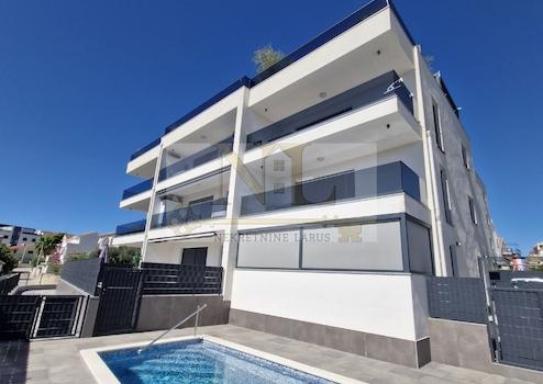 Wir verkaufen die Penthouse-Wohnung S9 mit Dachterrasse im zweiten Stock eines Neubaus in Okrug Gornji, in bester Lage, nur 300 Meter vom Meer und Strand entfernt.
