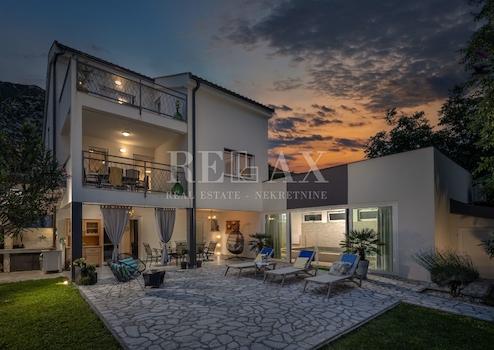 Zum Verkauf steht eine luxuriöse Villa in Tribalj, unweit von Crikvenica, direkt am wunderschönen Tribaljsko-See gelegen. Die 2018 erbaute moderne Immobilie bietet höchsten Komfort, Privatsphäre und Annehmlichkeiten und ist somit ideal für das Familienleben oder als Investition in die touristische Vermietung geeignet.
