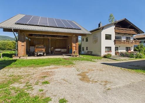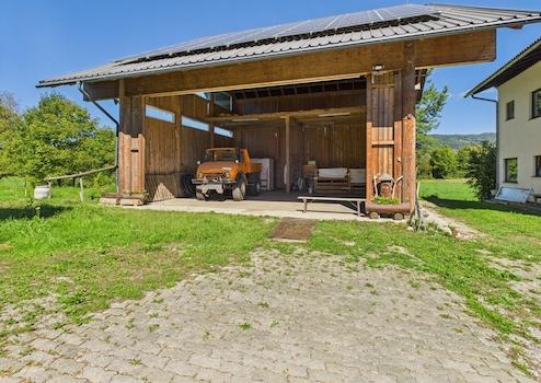 Die Liegenschaft verfügt über ein massiv gebautes Wohnhaus mit ca. 240 m² Wohnfläche, vier Ferienappartements im Erdgeschoss und einem separaten Wohnbereich im Obergeschoss. Beheizt wird das Objekt über eine Hackschnitzelanlage mit erneuertem Brenner (2023) und bestehender Micro-Fernwärmeversorgung. Eine Photovoltaikanlage mit mehr als 22 kWp sowie eine Solarthermieanlage sichern eine weitgehend autarke Energieversorgung. Ergänzend stehen ein Massivschuppen mit rund 300 m², eine 2014 errichtete Halle mit ca. 110 m² und ein Hackschnitzellager zur Verfügung.