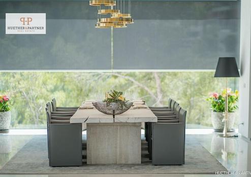 Die Immobilie ist vollständig mit einem intelligenten Hausautomationssystem, modernster Sicherheits- und Audiotechnik, Designerbeleuchtung sowie Solarenergie- und Fußbodenheizungssystemen ausgestattet. Die Garage bietet Platz für bis zu acht Fahrzeuge.