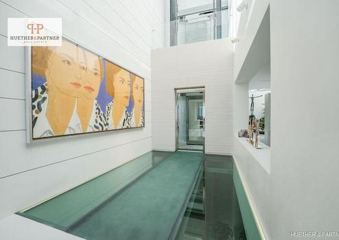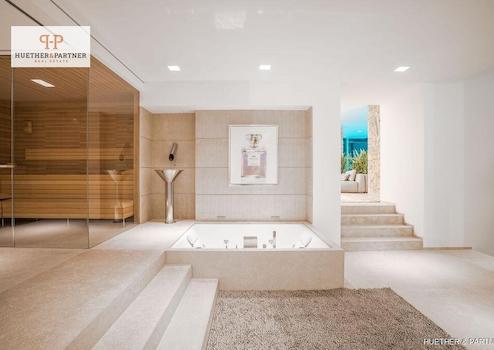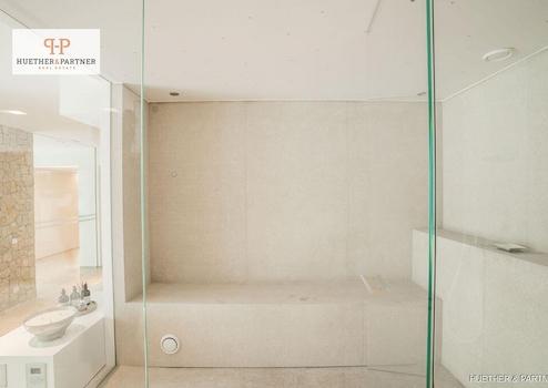 Im Untergeschoss befindet sich ein luxuriöser Wellnessbereich mit Innenpool, Sauna, Fitnessraum, Massageraum sowie eine separate Personalwohnung mit eigenem Zugang.