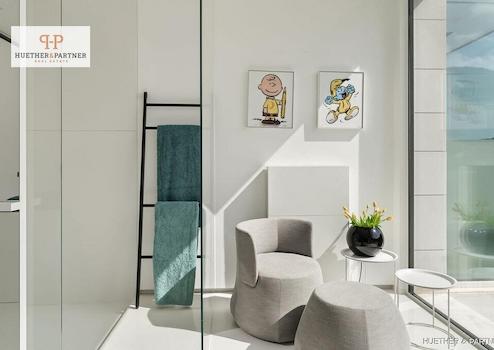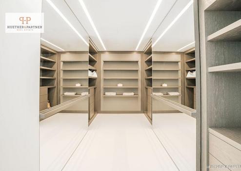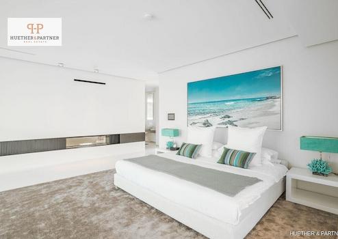 Im Obergeschoss befindet sich die exklusive Master-Suite mit Ankleidezimmer, Badezimmer en Suite und direktem Zugang zur Sonnenterrasse. Ergänzt wird diese Ebene durch drei weitere Schlafzimmer, ebenfalls mit eigenen Bädern.