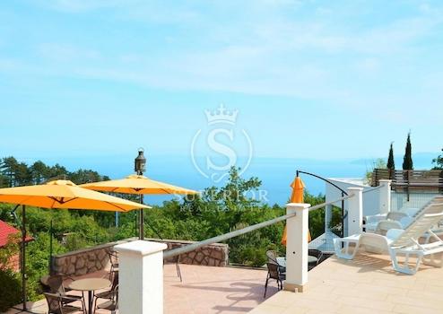 SPEKTAKULÄRES APARTMENTHAUS MIT POOL UND GEWERBEFLÄCHE – PANORAMABLICK ÜBER DIE GESAMTE BUCHT VON KVARNER