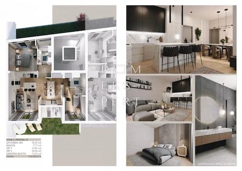 Zum Verkauf steht eine hochwertige 2-Zimmer-Wohnung mit zwei privaten Gärten, gelegen im gehobenen Wohnviertel Srebrnjak, Stadtteil Maksimir, Zagreb.