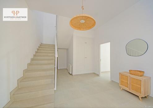 Auf einer Wohnfläche von rund 357 m² verteilen sich lichtdurchflutete Räume mit einer klaren, offenen Architektur. Einladende Wohn- und Essbereiche mit stilvollen Details schaffen eine warme Atmosphäre, während die hochwertige Einbauküche keine Wünsche offenlässt. Insgesamt stehen mehrere Schlafzimmer mit eigenen Bädern zur Verfügung, sodass sowohl Familie als auch Gäste viel Privatsphäre genießen können.