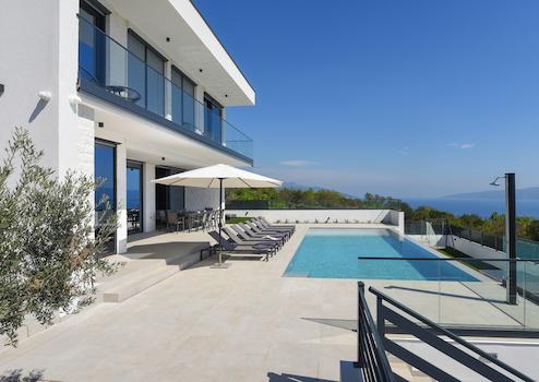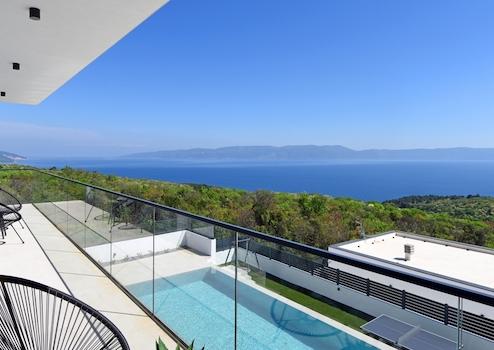 Das lichtdurchflutete Haus beeindruckt mit einer Ausstattung von höchster Qualität. Die elegante Architektur wird durch eine großzügige Terrasse und einen Balkon ergänzt, die ideale Plätze bieten, um warme Sommerabende zu genießen und die atemberaubende Aussicht zu erleben. Der private Pool ist ein weiterer Höhepunkt und verspricht exklusive Erholung und Vergnügen.