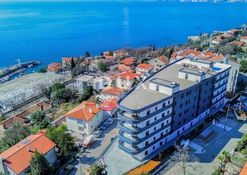 RIJEKA, KANTRIDA – 127 m² große Wohnung in einem luxuriösen Neubau, nur 250 Meter vom Meer entfernt, mit Garage und Panoramablick auf das Meer