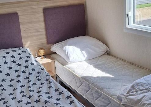 Das kleinere Schlafzimmer verfügt über 2 Einzelbetten.