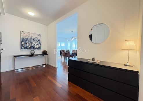 Zusätzlichen Wert bieten drei große Terrassen mit Blick auf das Grün und die Stadt. Die Küche ist komplett mit Bosch- und Franke-Geräten ausgestattet, und jedes Zimmer sowie das Wohnzimmer sind klimatisiert. Die Heizung ist gasbetrieben, und Sicherheit sowie Funktionalität werden durch ein Alarmsystem, eine Video-Gegensprechanlage und CO₂-Sensoren gewährleistet. Die Böden sind mit Parkett ausgelegt und das Interieur ist mit Designer-Möbeln eingerichtet.