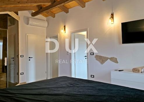 Cerovlje ist der zentrale Ort der gleichnamigen, weitläufigen Gemeinde, die sich nordöstlich von Pazin über die Hügellandschaft erstreckt und zahlreiche Weiler und größere ländliche Siedlungen umfasst. Die Gemeinde erstreckt sich über eine Fläche von 107 km². Hier befinden sich die längste Höhle Istriens, ein höchstgelegener Olivenhain und zwei Burgen. Durch die Gemeinde fließt der Fluss Pazinčica, und entlang des Flusstals verlaufen zunächst eine Eisenbahnlinie, dann eine Straße und schließlich eine Autobahn. In dieser märchenhaften Landschaft steht ein Haus mit Pool zum Verkauf. Es liegt am Rande eines ruhigen Dorfes, dessen Lage das authentische Erlebnis eines kleinen istrischen Dorfes, Intimität, Erholung von jeder Hektik und eine Pause vom Lärm bietet und gleichzeitig nahe genug an den dynamischen Städten Istriens mit ihren zahlreichen Annehmlichkeiten liegt. Das Haus mit seinem zeitlosen Charme und seiner Architektur fügt sich in Form und Farbe in die Siedlung und Landschaft ein. Der Wohnbereich ist konzeptionell zweigeteilt; Wohn- und Schlafbereich. Der Wohnbereich befindet sich im Erdgeschoss und besteht aus Küche, Esszimmer und Wohnzimmer in offenem Raumkonzept mit Zugang zu einer überdachten Terrasse, die sich zum Poolstrand fortsetzt, einem Abstellraum und einem Badezimmer. Der Schlafbereich befindet sich im ersten Stock und besteht aus zwei Schlafzimmern mit eigenem Bad, wobei ein Schlafzimmer zusätzlich über eine Sauna verfügt. Diese Immobilie am Dorfrand eignet sich perfekt für ein ruhiges Familienleben sowie als Investition zur touristischen Vermietung.