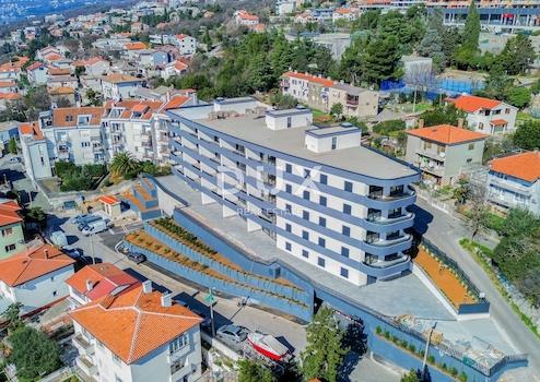 RIJEKA, KANTRIDA – 151 m² große Wohnung in einem luxuriösen Neubau, nur 250 Meter vom Meer entfernt, mit Garage und Panoramablick auf das Meer