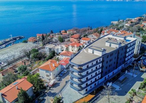RIJEKA, KANTRIDA – 155 m² große Wohnung in einem luxuriösen Neubau, nur 250 Meter vom Meer entfernt, mit Garage und Panoramablick auf das Meer