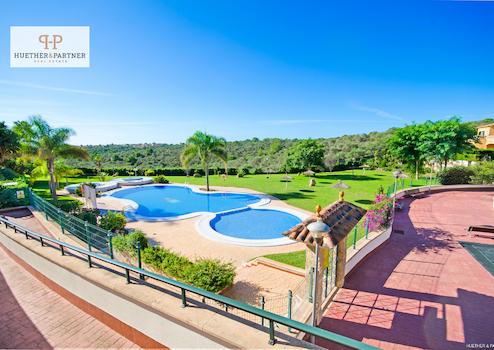 Massive Bauweise, Aluminium-Fenster und Fensterläden, WLAN-fähig, geflieste Böden, raumhochgeflieste Bäder, KFZ-Stellplatz, sehr gepflegter Gemeinschaftsgarten und Pool, komplett möbliert, Klima-Anlage
