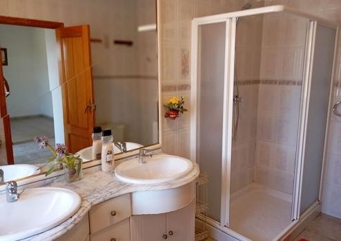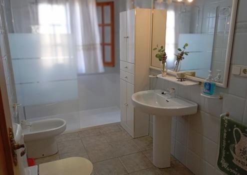 Das Anwesen selbst ist hell und geräumig und bietet viel Wohnraum. Die untere Etage fungiert als eigenständige Wohnung mit Wohn-/Esszimmer, Badezimmer, Küche und reichlich Platz für zusätzliche Schlafmöglichkeiten. Im ersten Stock befindet sich der Hauptwohnbereich, bestehend aus: 3 Schlafzimmern (Hauptschlafzimmer mit eigenem Bad und Juliet-Balkon), 1 Familienbadezimmer, einem geräumigen Wohn-Esszimmer sowie einer großen separaten Küche. Vom Wohnzimmer aus gelangt man auf eine große Sonnenterrasse mit Blick auf den Garten. Im Obergeschoss befinden sich ein großes Schlafzimmer und eine weitere Sonnenterrasse.