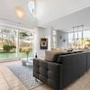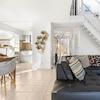 Vom Wohnzimmer aus führt eine offene Treppe in den ersten Stock.