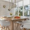 Rechts befindet sich ein Badezimmer mit großer Glasbadewanne für 2 Personen, Dusche, Waschbecken, WC und BD. Durch eine Glastür gelangt man in den großen Wohnessbereich mit Glasschiebetür zur Terrasse. Rechts befindet sich neben dem Essbereich eine halboffene Küche mit angeschlossenem Wintergartenbereich und Glastür zur Terrasse.