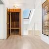 Erster Stock: Die obere Etage bietet einen Treppenabsatz mit offenem Giebel und zwei große Schlafzimmer. Das Hauptschlafzimmer hat TV und eine sehr schöne Verglasung mit Gartenblick. In dem zweiten Schlafzimmer befinden sich 2 Einzelbetten und ein Arbeitsplatz. Darüber hinaus finden Sie eine große Sauna mit Liegebereich und Dachfenster mit Dünenblick. Außerdem ein zweites Badezimmer mit ebenerdiger Dusche und Waschbecken, mit Fenster. Die Zentralheizung (Gas) und die mechanische Abluftanlage sorgen für ein optimales Raumklima.