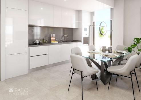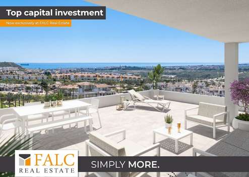 Die Apartments bieten wahlweise 2 oder 3 Schlafzimmer sowie 2 voll ausgestattete Badezimmer. Großzügige, lichtdurchflutete Räume und ein durchdachter Grundriss schaffen ein komfortables Wohngefühl. Jedes Apartment verfügt über eine große Terrasse, während die Wohnungen im obersten Stockwerk ein privates Solarium mit atemberaubendem Meerblick bieten – perfekt, um die mehr als 300 Sonnentage im Jahr in vollen Zügen zu genießen.