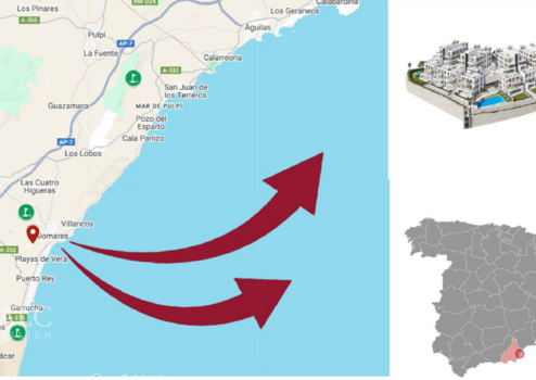Vera liegt strategisch günstig mit schneller Anbindung an benachbarte Orte wie Garrucha, Mojácar, Cuevas del Almanzora und ist über die Autobahn A-7 sowie den Flughafen Almería (ca. 1 Stunde) gut erreichbar. Auch der internationale Flughafen von Murcia ist nur etwa 1,5 Stunden entfernt – ideal für internationale Käufer oder Pendler.