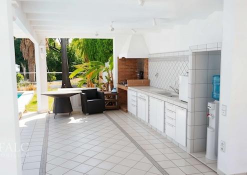 Außenbereich: Großzügiger Garten mit Palmen und mediterraner Bepflanzung, BBQ-Area, Panorama-Terrassen
