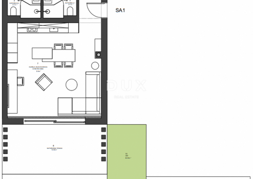 Nur 95 Meter vom Meer entfernt, im ruhigen Ort Zaton, entsteht ein modernes Projekt mit neun Luxuswohnungen in einer geschlossenen Anlage mit Rampe am Eingang. Die Siedlung ist als private Oase konzipiert und besteht aus fünf Gebäuden, in denen die Bewohner absolute Sicherheit und Privatsphäre genießen. Die Wohnungen in den oberen Stockwerken verfügen über geräumige Dachterrassen mit herrlichem Blick auf das Meer und die Inseln, während die Einheiten im Erdgeschoss über eigene Gärten verfügen. Zu jeder Wohneinheit gehören zwei Außenparkplätze. Gegen Aufpreis können auch komplett möblierte Wohnungen erworben werden. Besonderes Augenmerk wurde auf die Innenarchitektur, moderne technologische Lösungen und hochwertige Materialien gelegt, um das Haus funktional, sicher und komfortabel zu machen. Das Smart-Home-System ermöglicht die Steuerung von Beleuchtung, Klimaanlage und Heizung. Die Konstruktion besteht aus einer Stahlbetonkonstruktion mit 10 cm Wärmedämmung. Aluminiumschreinerei mit elektrischen Rollläden, Multisplit-Klimaanlagen, Fußbodenheizung in den Bädern und im Wohnzimmer, Video-Gegensprechanlage, Überwachungskameras sowie Einbruch- und Brandschutztüren gehören zur Standardausstattung. Es wurden erstklassige Sanitärkeramik und Bodenbeläge namhafter Hersteller verwendet. Die Fertigstellung der Arbeiten ist für Ende 2025 geplant. Die Wohnung SA1 befindet sich im Erdgeschoss und besteht aus zwei Schlafzimmern, zwei Bädern, einem Abstellraum und einem geräumigen Wohnbereich mit Küche und Esszimmer. Ihr besonderer Wert wird durch einen großen Garten, eine überdachte Terrasse und zwei weitere nicht überdachte Terrassen erreicht. Zaton ist eine ruhige dalmatinische Stadt, die für ihr kristallklares Meer, ihre Kieselstrände und ihre entspannte mediterrane Atmosphäre bekannt ist. In der Nähe befindet sich Zadar – eine Stadt reich an Geschichte, kulturellen Sehenswürdigkeiten und erstklassigen Restaurants, ein ideales Reiseziel zum Leben und für den Urlaub. Der Verkäufer ist eine juristische Person und der Käufer zahlt keine Grundsteuer. Für alle weiteren Informationen und um einen Besichtigungstermin zu vereinbaren, können Sie sich gerne an uns wenden.