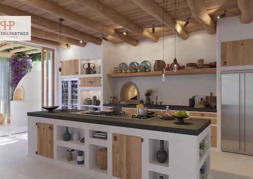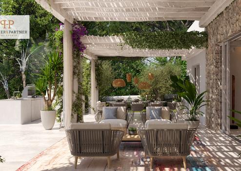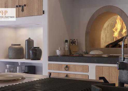 Große Fensterfronten und lichtdurchflutete Räume sorgen für beeindruckende Ausblicke auf die umliegende Natur und das Meer. Hochwertige Materialien wie Naturstein, Holz und edle Textilien schaffen eine warme und einladende Atmosphäre.