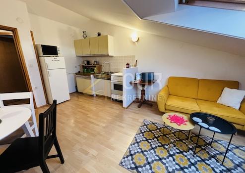 Im ersten Stock befindet sich eine Wohnung von 75,65 m², die zwei Schlafzimmer, eine Küche, ein Wohnzimmer, einen Flur, einen Abstellraum, ein Badezimmer und eine Loggia umfasst.