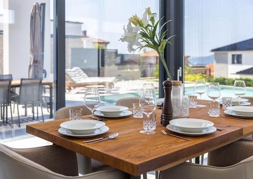Wir präsentieren Ihnen eine außergewöhnliche Gelegenheit – eine moderne und luxuriöse Villa in einer der begehrtesten Lagen der Insel Krk, die einen spektakulären Meerblick und die perfekte Kombination aus Privatsphäre, Eleganz und Komfort bietet. Diese architektonisch einwandfreie Villa befindet sich in einer ruhigen, gepflegten Wohngegend auf einem 518 m² großen Grundstück und strahlt Raffinesse, erstklassiges Design und einwandfreie Funktionalität aus. Sie ist ideal sowohl für ein luxuriöses Familienleben als auch als Top-Investition in den Elitetourismus. Der sorgfältig angelegte Garten verfügt über einen großen Infinity-Pool, ein geräumiges Sonnendeck, eine überdachte Terrasse mit Essbereich im Freien und eine Sommerküche mit Grill. Im Erdgeschoss finden Sie einen geräumigen offenen Wohnbereich mit Panorama-Glaswänden, die einen Blick auf den Pool und das Meer eröffnen, eine moderne Küche mit Kochinsel und ein Esszimmer. Auf derselben Etage befinden sich zwei komfortable Schlafzimmer, jedes mit eigenem Bad und privater Terrasse. Die erste Etage der Villa bietet eine Extraportion Luxus: einen Wohn-/Arbeitsbereich mit Schlafsofa und Balkon mit Waldblick, ein Hauptschlafzimmer mit Badewanne, luxuriösem Badezimmer und moderner skandinavischer Sauna, einen geräumigen Balkon mit atemberaubendem Meerblick und einen geräumigen begehbaren Kleiderschrank. Die Villa wurde nach höchsten Standards gebaut und mit modernster Technologie ausgestattet: Fußbodenheizung über eine Wärmepumpe, Klimaanlage in allen Zimmern, hochwertige Aluminiumschreinereiarbeiten, raffinierte Beleuchtung und ein beheizter Pool. Die Südausrichtung sorgt den ganzen Tag über für viel natürliches Licht, während der Panoramablick auf die Kvarner-Bucht und die umliegenden Inseln einfach atemberaubend ist. Es gibt überdachte Parkplätze für bis zu drei Fahrzeuge. Das Meer ist nur 2.500 Meter entfernt – fünf Autominuten oder ein angenehmer 30-minütiger Spaziergang. Dem zukünftigen Eigentümer kann ein Bootsliegeplatz im nahegelegenen Hafen zur Verfügung gestellt werden. Der Flughafen Rijeka ist nur 27 km entfernt (ca. 20 Autominuten). Diese Villa ist nicht nur ein Zuhause – sie ist ein Lebensstil. Die Kombination aus höchstem Komfort, modernem Design und einzigartiger Lage macht es zu einer seltenen Gelegenheit auf dem Markt. Sehr geehrte Interessenten, wir freuen uns über Ihr Interesse an den Immobilien aus unserem Angebot. Für weitere Informationen und die Vereinbarung eines Besichtigungstermins kontaktieren Sie uns bitte. Beratungen sind auch in deutscher Sprache möglich.