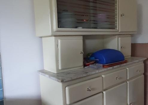 Das Haus hat eine Fläche von 150 m², verteilt auf zwei Etagen. Im Erdgeschoss gelangt man durch einen kleinen Vorraum in die ursprüngliche Küche mit gut erhaltener und gebrauchsfähiger Ausstattung. Vom Vorraum führt der Weg auch ins Badezimmer und weiter in die Küche, von der aus man in das große Wohnzimmer gelangt.