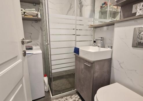 Die Wohnung befindet sich im 1. Stock eines Mehrfamilienhauses, hat 40 m² und wurde komplett renoviert. Sie besteht aus: Wohnzimmer, Küche, Schlafzimmer, Badezimmer und Terrasse.