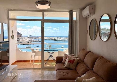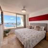 Das Apartment verfügt über zwei Schlafzimmer, ein helles Wohnzimmer mit offener, moderner Küche, ein stilvolles Badezimmer mit Dusche sowie eine sonnige Terrasse, von der aus man spektakuläre Sonnenuntergänge genießen kann. Durch die großen Fensterfronten eröffnet sich von Wohnzimmer, Küche und einem der Schlafzimmer ein unvergleichlicher Panoramablick auf das Meer.