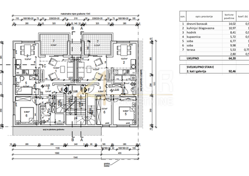 Die 2. Etage mit 58,60 m² besteht aus Wohnzimmer mit Küche und Essbereich, Flur, Badezimmer, zwei Schlafzimmern und Terrasse.